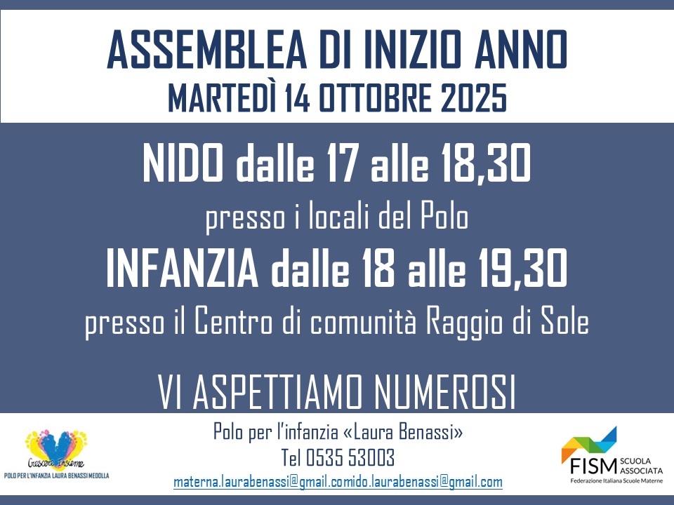nell'augurarci che siate sereni come vediamo sereni i vostri e le vostre bambine, vi invitiamo alla prima assemblea del nostro Polo per l'infanzia per continuare insieme questa avventura educativa appena iniziata!