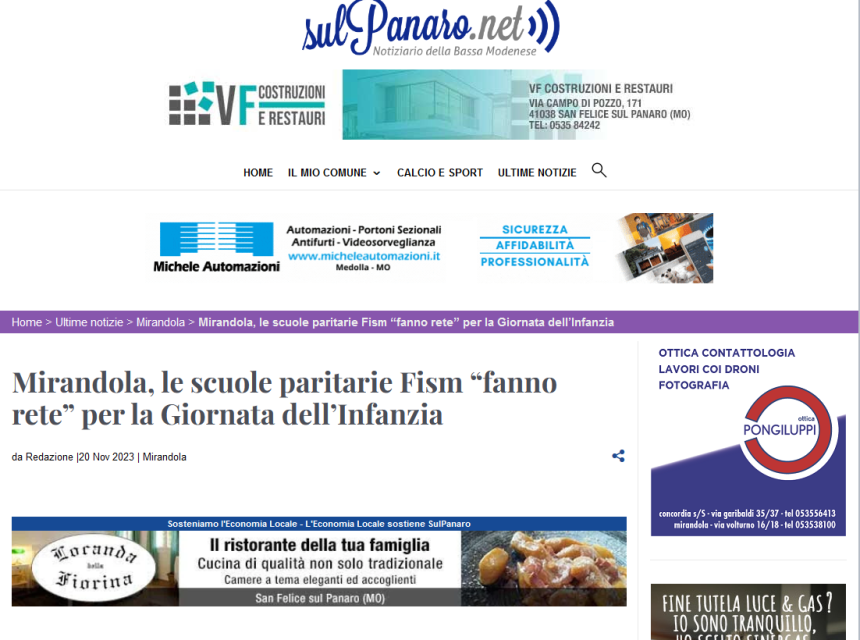 Liniziativa della nostra scuola condivisa con la rete di scuole FISM evidenziata dal giornale locale online "Sul Panaro"
