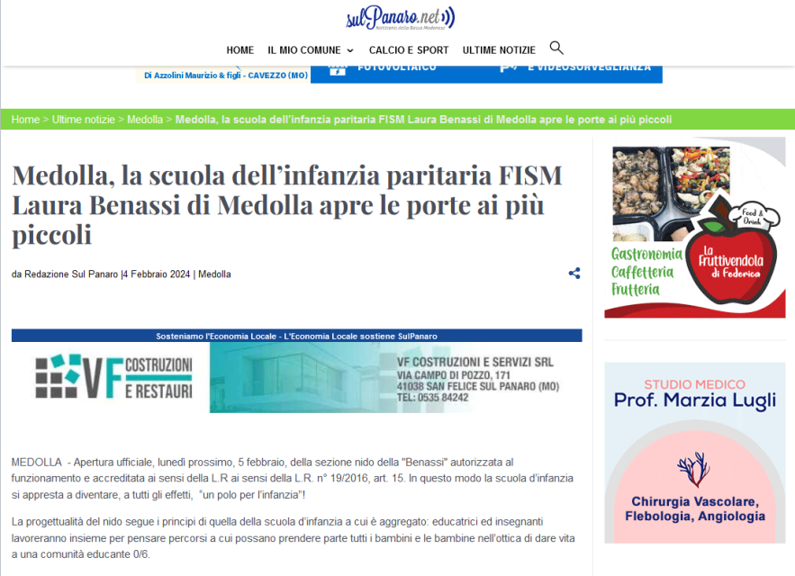 L'apertura del nido Benassi evidenziata dal giornale locale online "Sul Panaro"