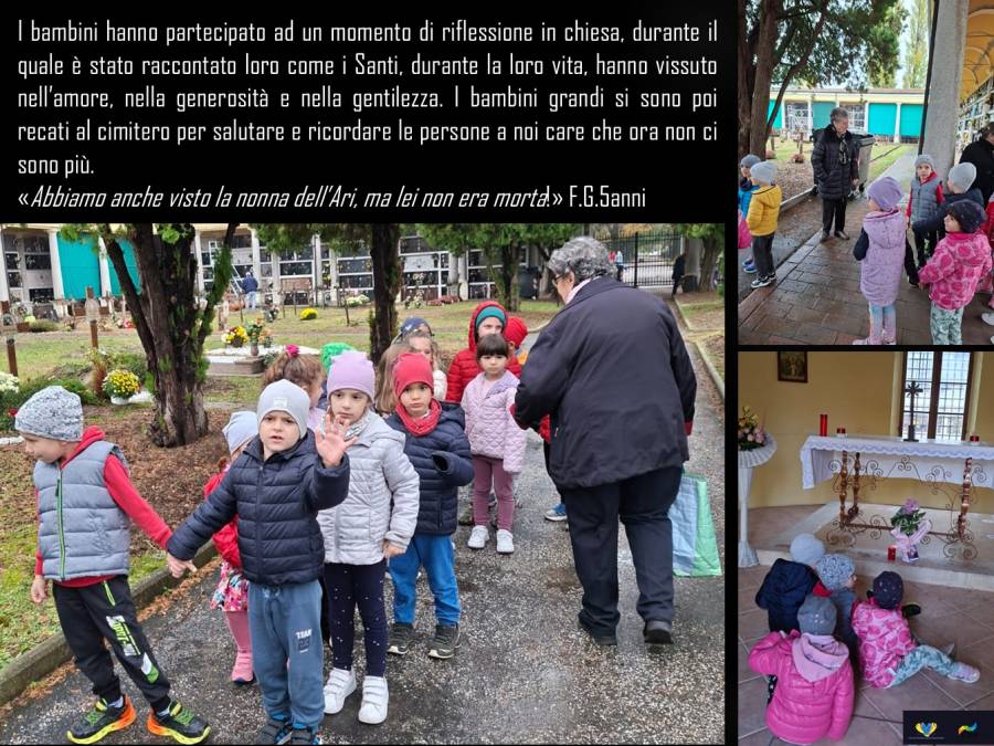 Alla vigilia della festa di Ognissanti, i bambini hanno partecipato a un momento di riflessione in chiesa, dove è stato raccontato loro come i Santi, durante la loro vita, abbiano vissuto nell’amore, nella generosità e nella gentilezza. I più grandi si sono poi recati al cimitero per salutare e ricordare le persone care che ora non ci sono più.