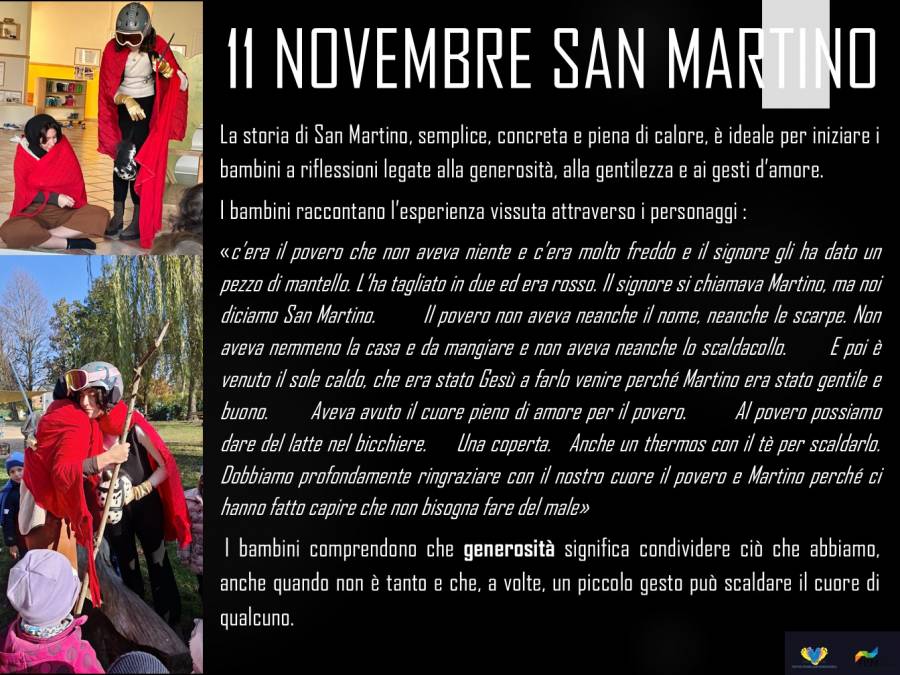 La storia di San Martino, semplice, concreta e piena di calore, è ideale per iniziare i bambini a riflessioni legate alla generosità, alla gentilezza e ai gesti d’amore.