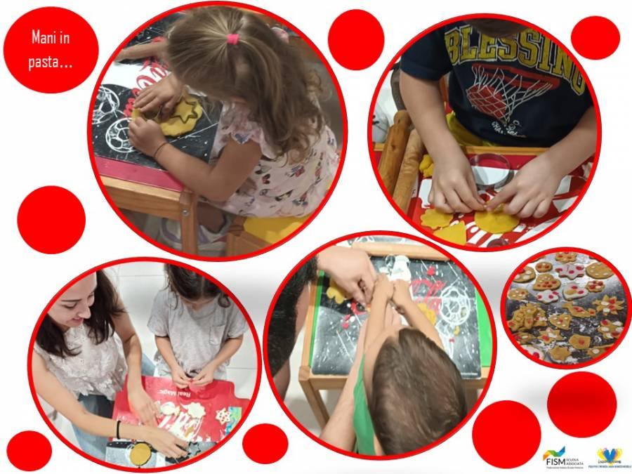 Grazie all’impasto preparato dalla Frolleria Anfass, i bambini si sono divertiti a modellare i biscotti, che le maestre hanno poi infornato. Una volta cotti, sono stati confezionati in sacchetti bianchi e rossi -decorati dagli stessi bambini- e consegnati per essere portati a casa, anche se... qualcuno non ha resistito alla tentazione e li ha assaggiati subito! (Erano buonissimi!)