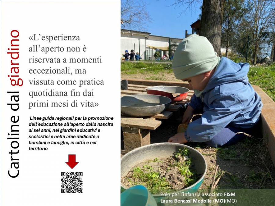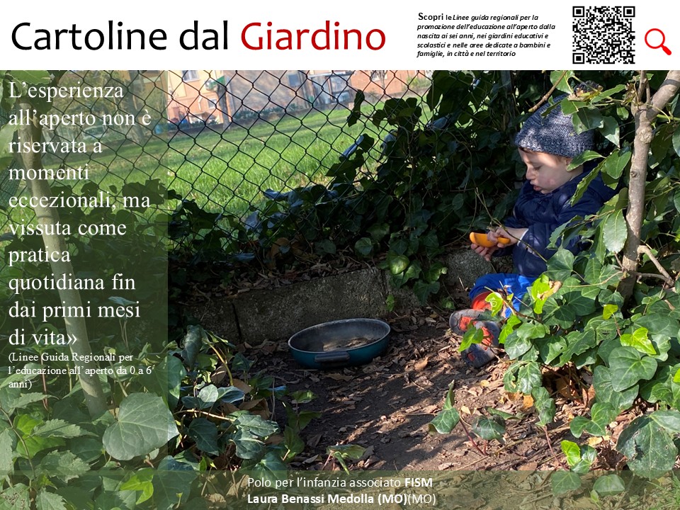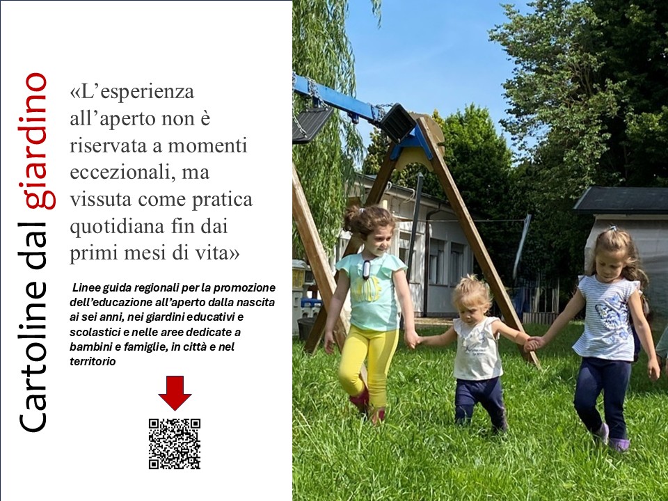 Per condividere il valore di questo approccio educativo, abbiamo accolto l’invito della Regione di testimoniarlo e lo facciamo attraverso la personalizzazione delle cartoline predisposte dal coordinamento pedagogico territoriale.