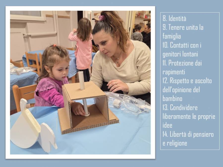 20 NOVEMBRE 2025: abbiamo celebrato la 36ma Giornata dei Diritti dell’Infanzia e dell'adolescenza con un laboratorio dedicato a bambini e genitori, ponendo al centro il diritto alla pace: scelta che nasce dalla consapevolezza che, senza pace, nessun altro diritto dell’infanzia può essere davvero garantito.