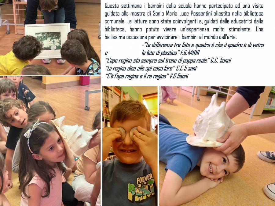 Questa settimana i bambini della scuola hanno partecipato ad una visita guidata alla mostra di Sonia Maria Luce Possentini allestita nella biblioteca comunale. Le letture sono state coinvolgenti e, guidati dalle educatrici della biblioteca, hanno potuto vivere un’esperienza molto stimolante. Una bellissima occasione per avvicinare i bambini al mondo dell’arte.