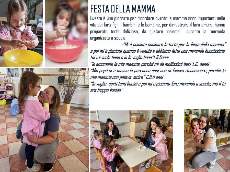 ”Mi è piaciuto cucinare le torte per la festa della mamma” e poi mi è piaciuto quando è venuta e abbiamo fatto una merenda buonissima. Lei mi vuole bene e io le voglio bene”L.G.6anni