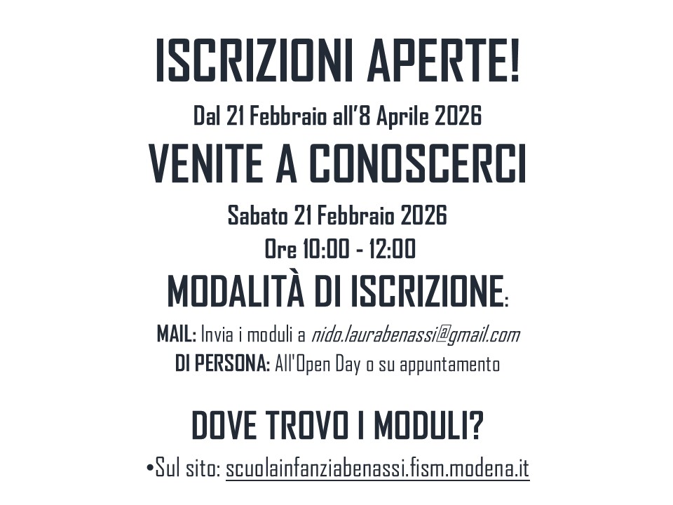 Per qualsiasi dubbio o per fissare un appuntamento, non esitate a scriverci: nido.laurabenassi@gmail.com