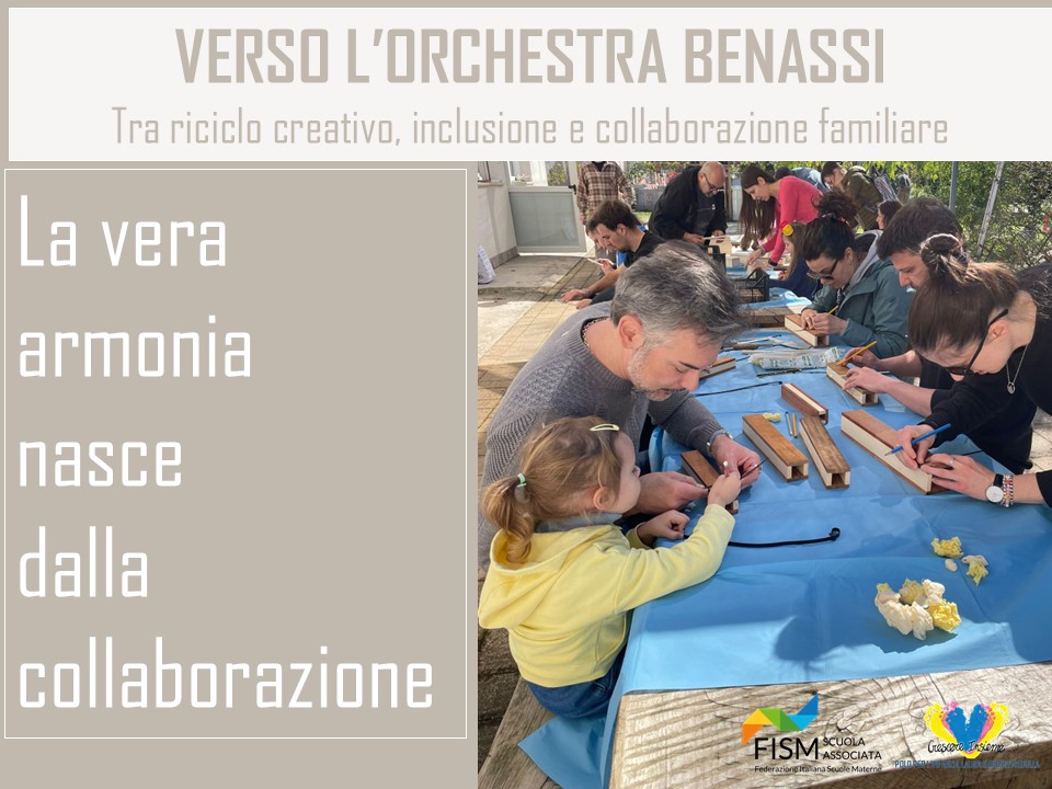 Partendo da materiali di recupero, sotto la guida attenta di Luciano Bosi**, Sara Setti, Marco Del Pan e Giorgia Zucchi, abbiamo costruito gli strumenti che formeranno l’"Orchestra Benassi", un patrimonio musicale permanente che resterà a disposizione di tutti i bambini e le bambine del nostro polo 0/6.