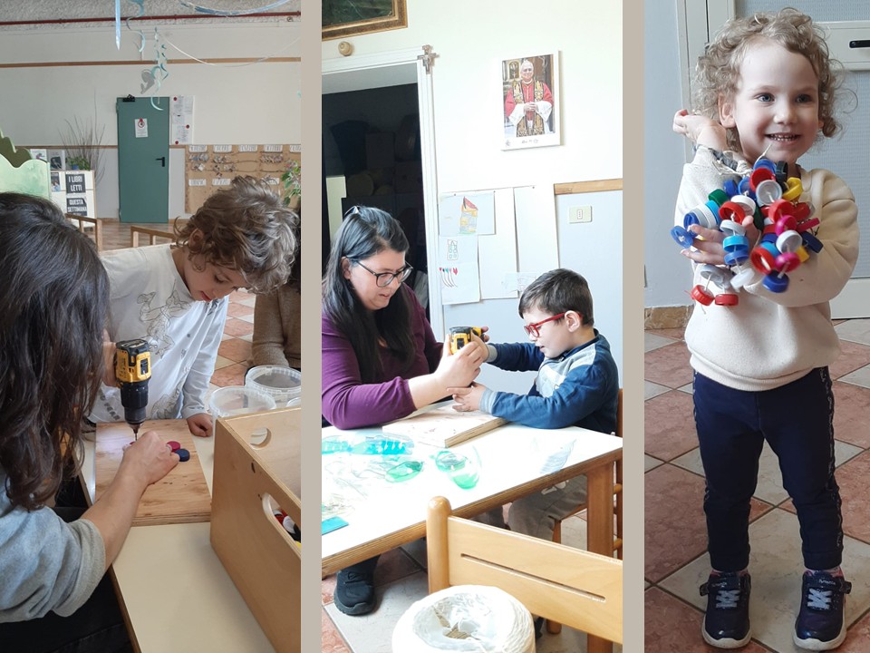 Il 14 marzo non ci siamo limitati a costruire oggetti: abbiamo dato il via a un’avventura dove l’ecologia incontra la musica e l’inclusione diventa un gesto concreto. Sotto la guida esperta degli amici di AstronaveLab (https://astronavelab.it/) e del percussionista ed entomusicologo Luciano Bosi (https://www.qualepercussione.com/?p=2762) bambini e famiglie hanno iniziato a trasformare materiali di recupero in veri strumenti musicali. Questi pezzi unici resteranno in eredità a tutti i bambini del Polo e animeranno il nostro percorso musicale, dando vita alla nostra speciale, ecologica e inclusiva "Orchestra Benassi".