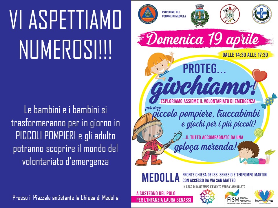Il Gruppo Comunale Volontari Protezione Civile di Medolla e di Finale Emilia, la Croce Blu San Felice-Medolla- Massa Finalese e agli Amici dei VvF di Mirandola, con il patrocinio del Comune di Medolla, in collaborazione con i Ma.Pa organizzano: