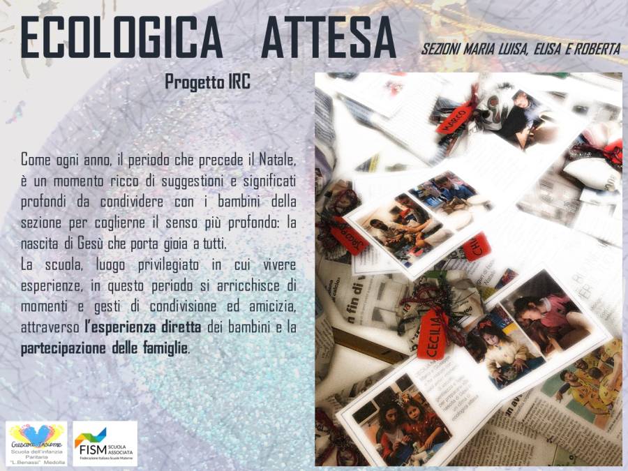 Coerente con la progettazione annuale "ecologica inclusione" l'attesa del Natale -immancabile capitolo della progettazione annuale IRC (insegnamento religione cattolica)- non poteva che essere ecologica!