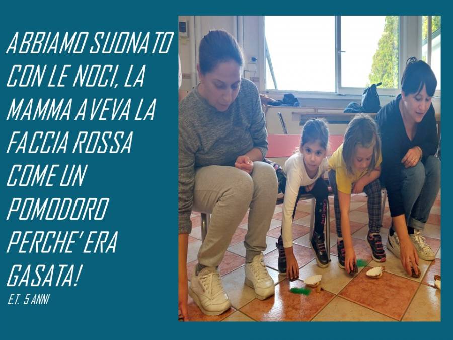 Abbiamo suonato con le noci, la mamma aveva la faccia tutta rossa come un pomodoro perchè era gasata!
