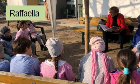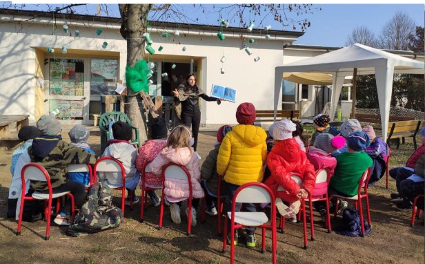 Il giardino è stato addobbato per accogliere tante nuove storie ed i bambini hanno recitato una poesia per introdurre i racconti che sono stati letti dalle mamme, dai papà e dai nonni .