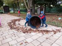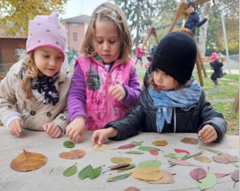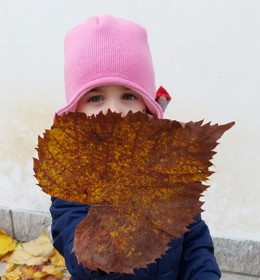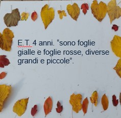 Esplorando il giardino con regolarità i bambini scoprono che “le foglie sono cadute tutte mentre facevamo colazione”(F 4 anni). Osservare la natura diventa quindi la premessa per scoprire il mutare del tempo, conoscere e creare con le foglie in un percorso multisensoriale.