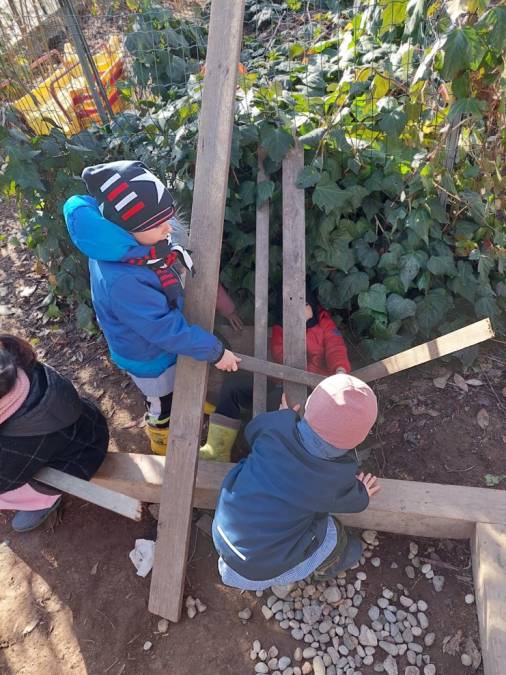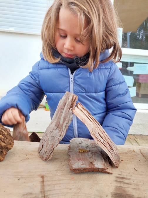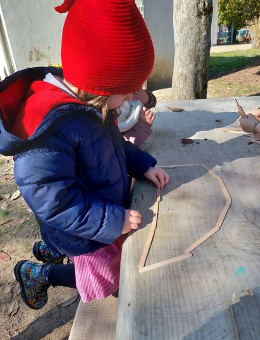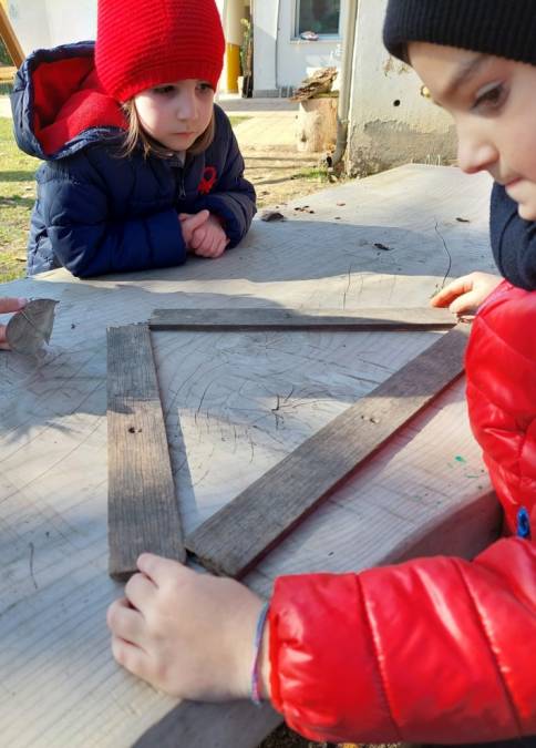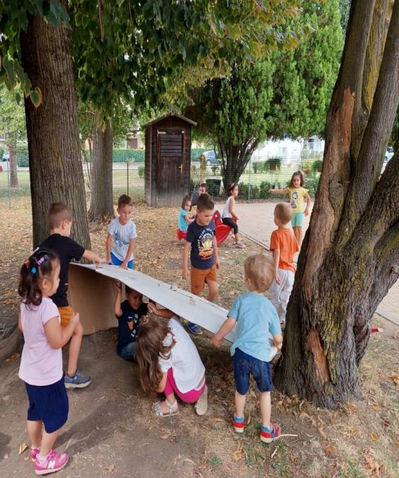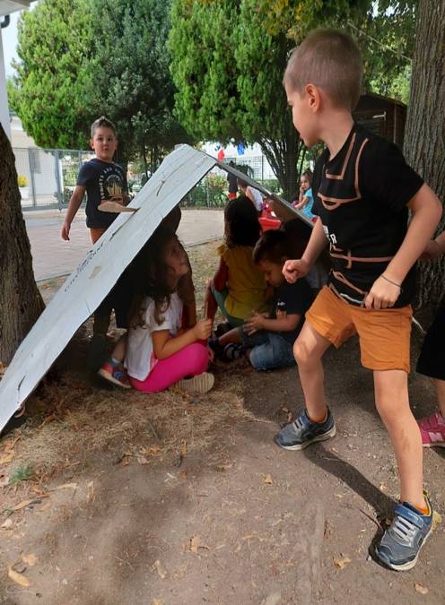 Il laboratorio che ha accompagnato i bambini e le bambine si è svolto in due fasi: la prima più orientata alla sperimentazione della costruzione di una casa, utilizzando diversi materiali (cartaceo, plastico, naturale) e il disegno. Durante l’intero anno scolastico il gruppo ha avuto la possibilità di confrontarsi sui materiali lasciati a disposizione, indagando, provando a costruire, progettando e sperimentando.