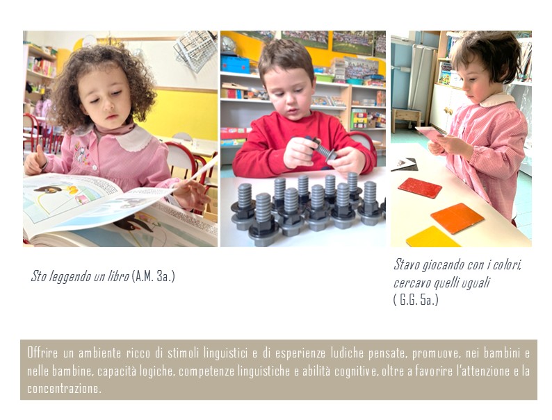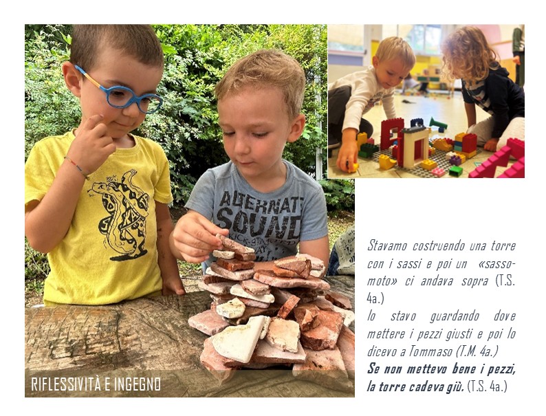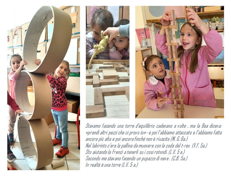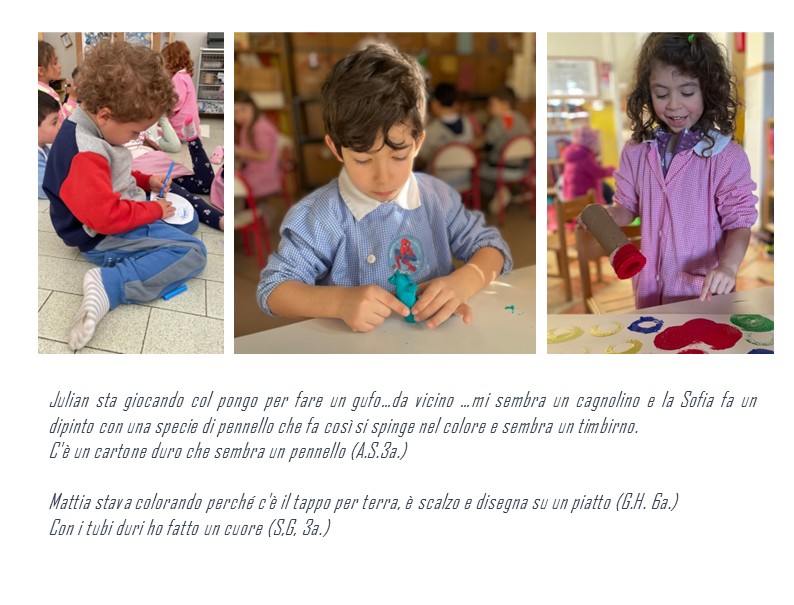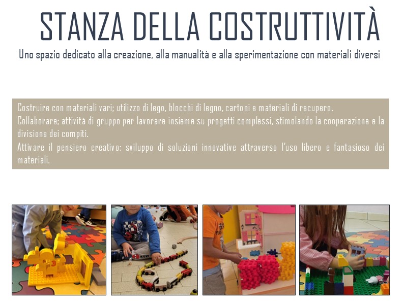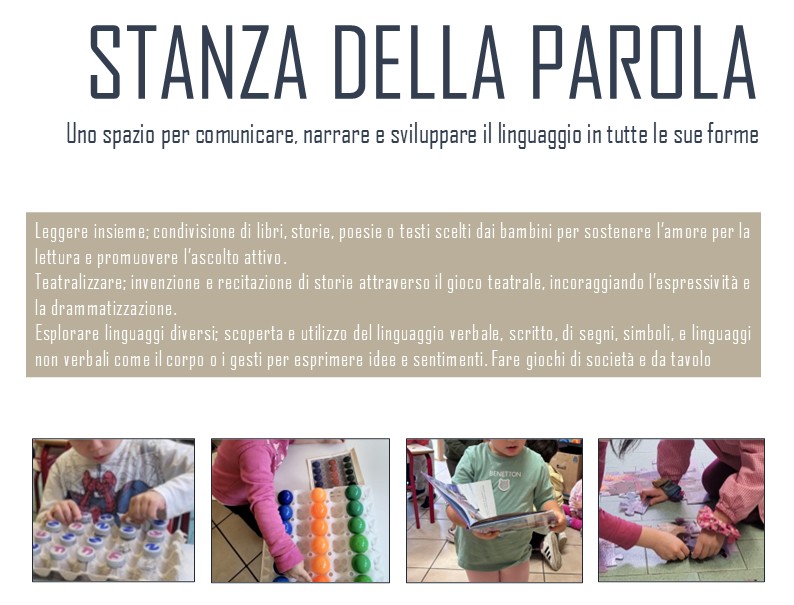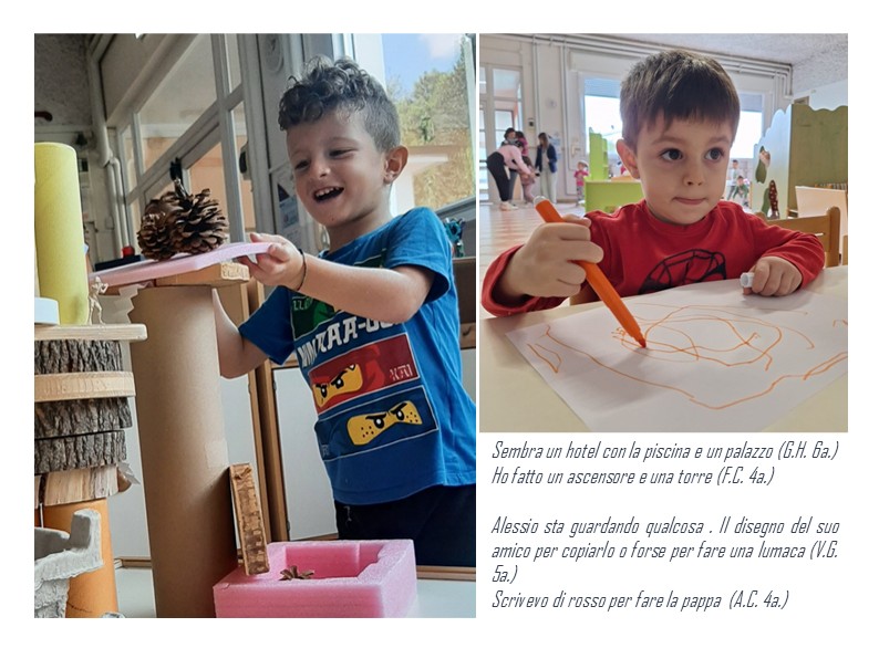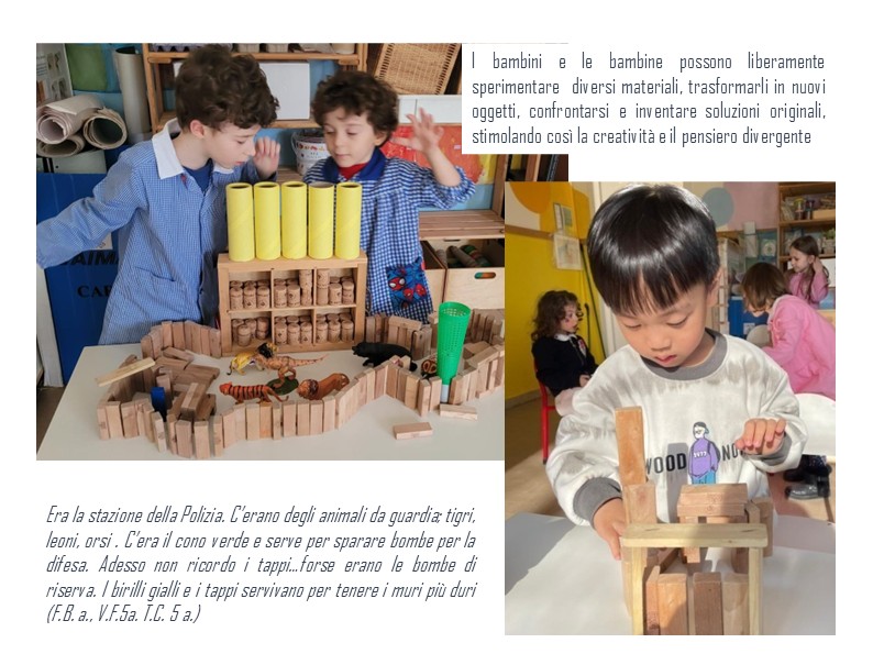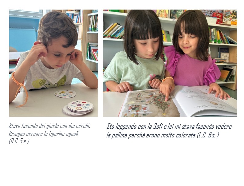 La progettazione annuale “Giochi di pace” e l’invito “Liberi di scegliere” hanno tracciato il percorso, guidandoci nella costruzione di un ambiente accogliente, attento all’ascolto e capace di valorizzare ogni bambino nella sua unicità. Le stanze tematiche — Costruttività, Riuso, Bellezza e Parola — si sono sempre più connotate come luoghi flessibili e ispiranti, per accogliere, sostenere e valorizzare linguaggi diversi e accompagnare i processi di crescita.