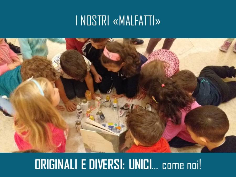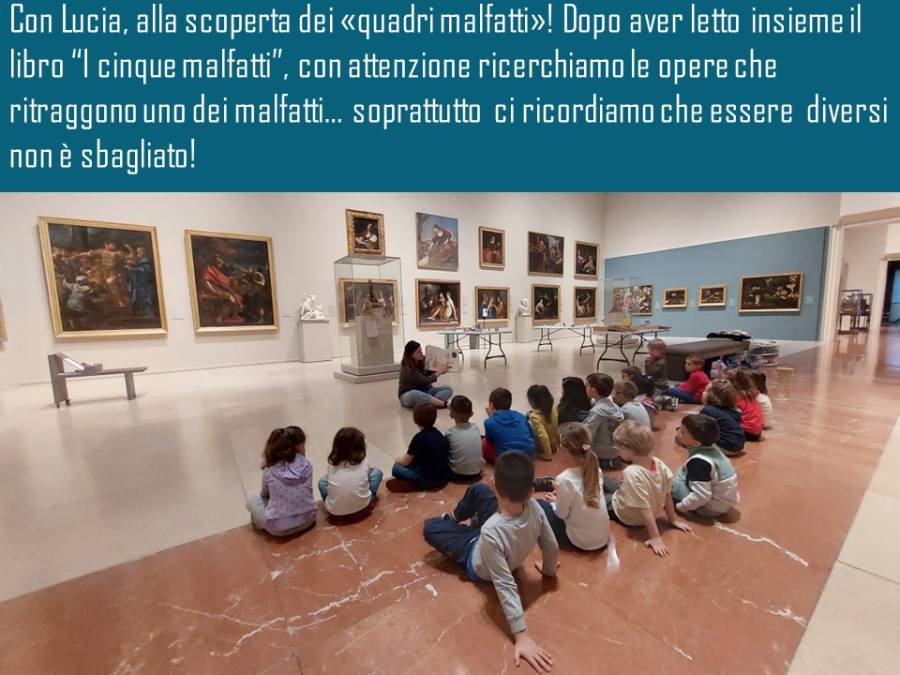 Il percorso scelto, coerente con la nostra progettazione annuale "Ecologia inclusione" è “IN GALLERIA IN COMPAGNIA DEI QUADRI MALFATTI”, ispirato al capolavoro di letteratura per l’infanzia di Beatrice Alenagna da cui prende il nome, “I Cinque Malfatti”: un invito a ricordare a ciascuno di noi che le differenze dovrebbero essere considerate una ricchezza che ci rende unici e speciali, mai “sbagliati”!