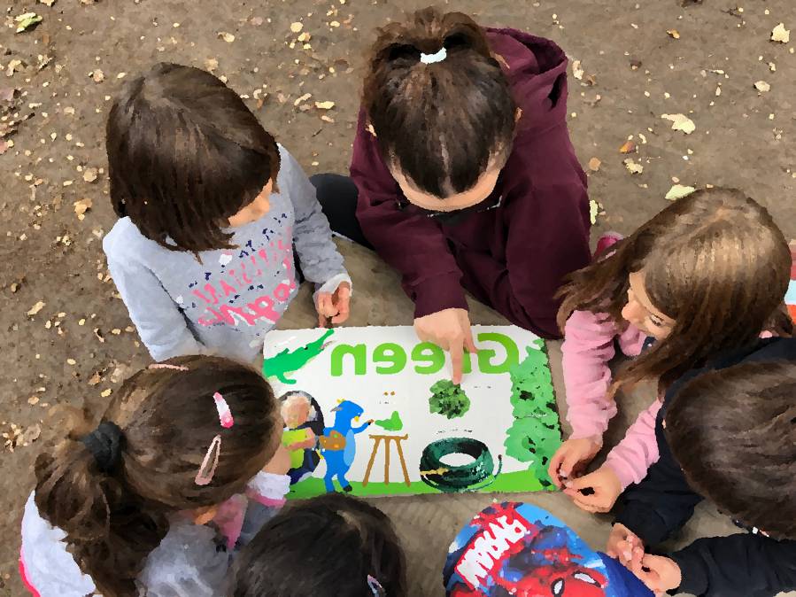 Nella scuola dell'infanzia, dentro e fuori le mura scolastiche, dove sono numerosissime le occasioni per mettere in pratica la lingua inglese. Nella sezione i materiali, i cartelloni, gli oggetti, i giocattoli, ma anche il cibo e le bevande del momento del ristoro possono essere il giusto spunto per parlare e ascoltare parole nuove, suoni, espressioni.