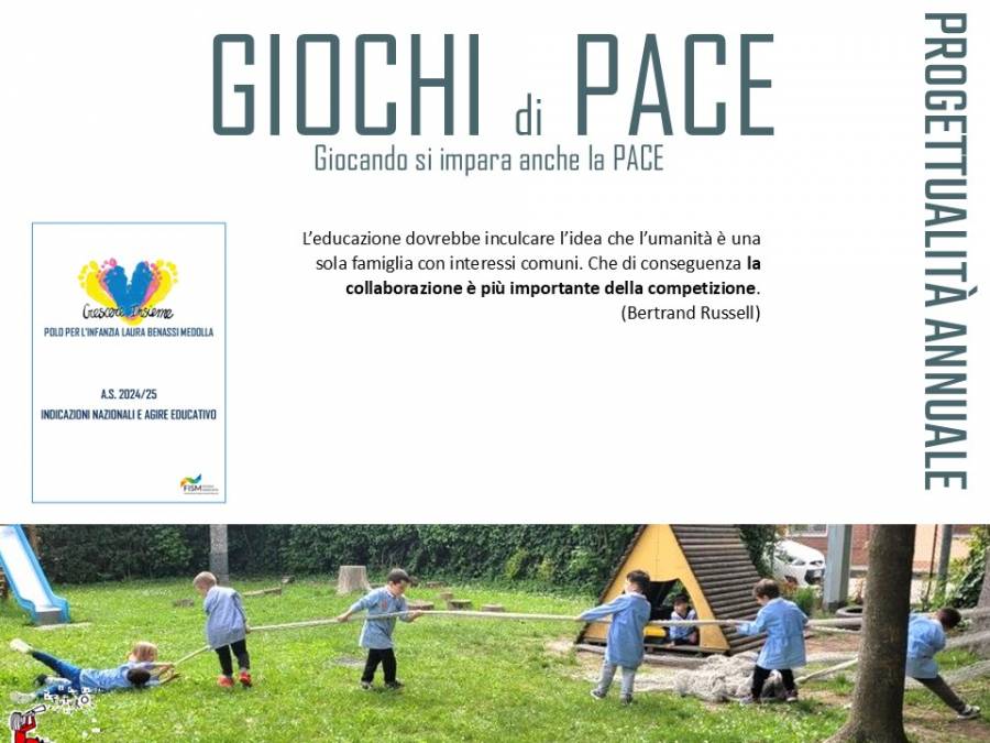 Giocare, insieme alla relazione, rappresenta la via privilegiata per apprendere. Attraverso il gioco si promuovono solidarietà, cooperazione e rispetto reciproco: elementi fondamentali per costruire un futuro migliore. È nel gioco che i bambini imparano a conoscersi, a collaborare, a scoprire l’altro come risorsa, sperimentando la gioia di crescere insieme.
