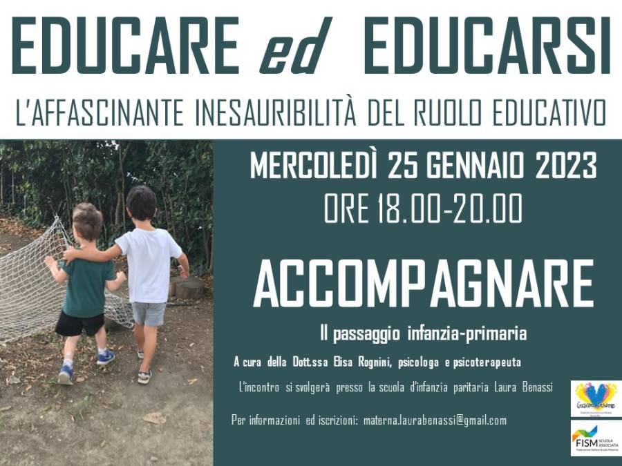 Per accompagnare i genitori nel bellissimo -ma anche difficile- compito di educare, la scuola propone incontri a sostegno di questo ruolo, alcuni di questi in progettazione grazie al contributo di ODV DIOGENE di Medolla, altri promossi dal coordinamento pedagogico FISM.