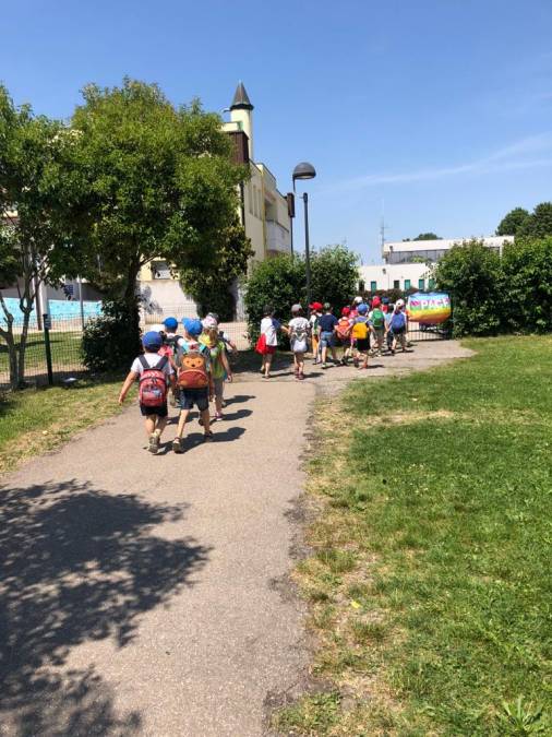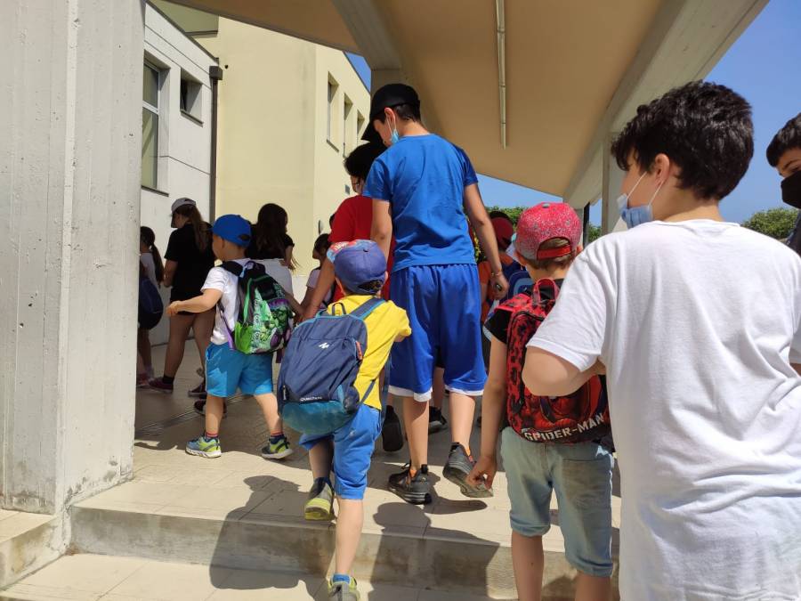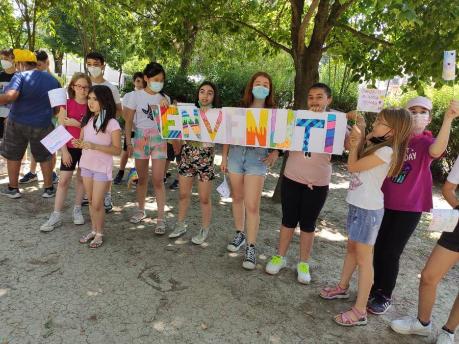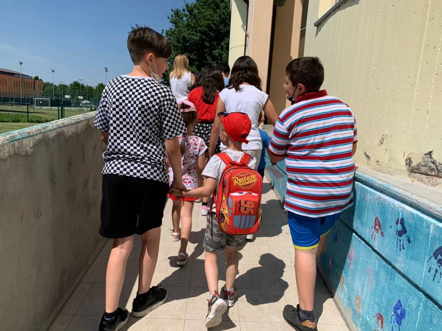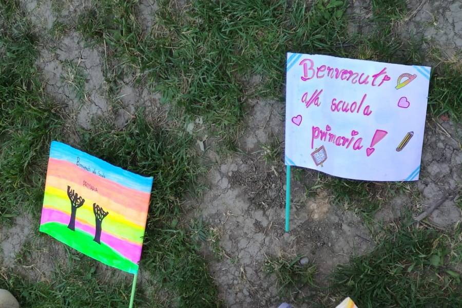 Ad accogliere i nostri bambini e le nostre bambine, gli alunni dell'ultimo anno della scuola primaria con le loro maestre.